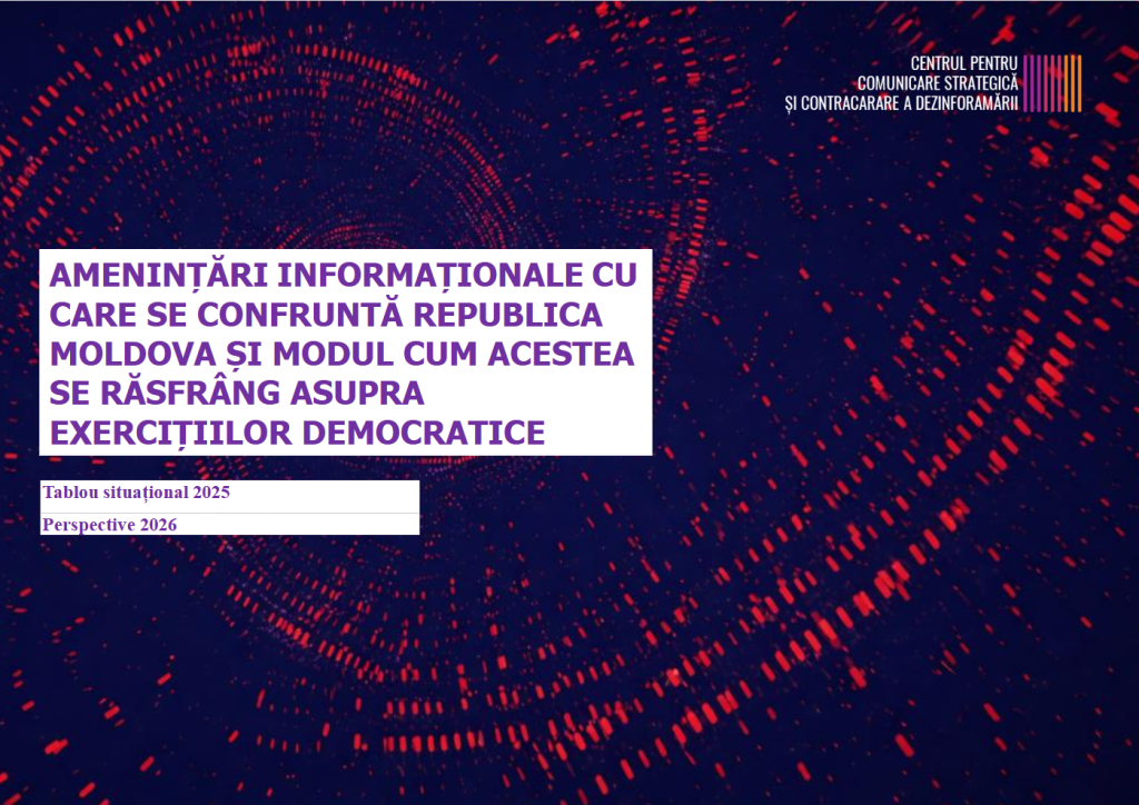 Centrul pentru Comunicare Strategică și Contracarare a Dezinformării a publicat Raportul „Amenințări informaționale cu care se confruntă Republica Moldova și modul cum acestea se răsfrâng asupra exercițiilor democratice – anul 2025, perspective pentru 2026”. Concluzia generală: Republica Moldova este vizată de un sistem integrat, constant și profesionalizat de influență informațională, care urmărește erodarea încrederii intrasocietale, în […]